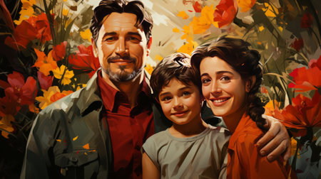 A happy, cheerful family bonding outdoors, looking at camera generated by artificial intelligence