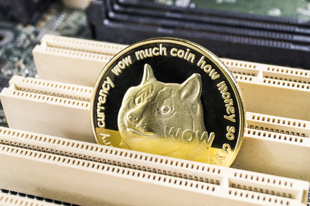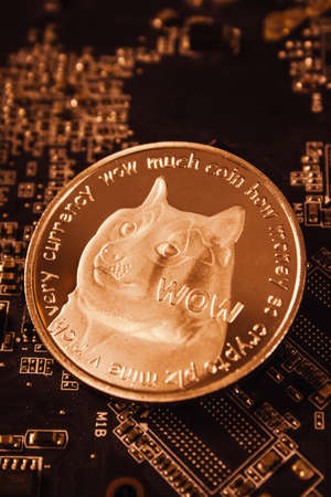 Dogecoin on graphic videocard in soft light