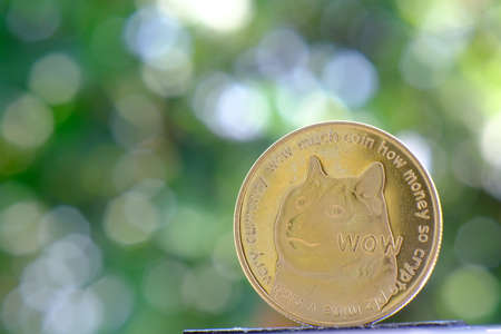 A physical version of Dogecoin (Cryptocurrency). A conceptual image for investors in the fast-growing cryptocurrency and blockchain technology market.
