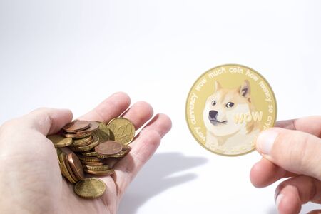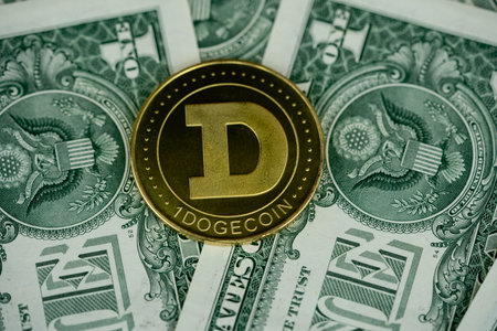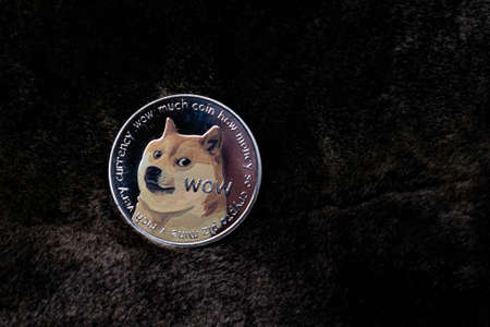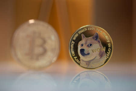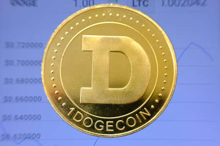 A physical version of Dogecoin (Cryptocurrency). A conceptual image for investors in the fast-growing cryptocurrency and blockchain technology market.