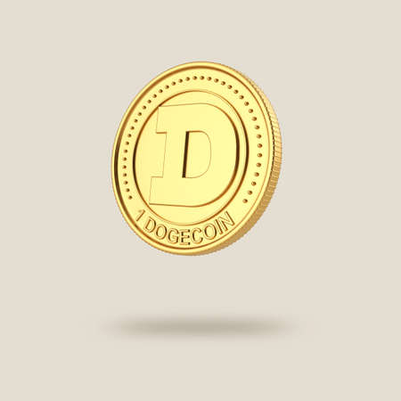 Cryptocurrency Dogecoin concept. Gold Dogecoin on a pink background.3D illustration, 3D rendering, cryptocurrency, dogecoin