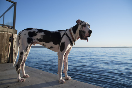 Portrait of a Harlequin Great Dane dog with heterochromia