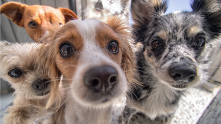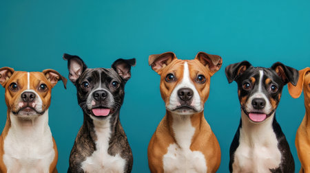 A captivating portrait of four adorable dogs showcasing their unique personalities against a vibrant background. Perfect for pet lovers and animal enthusiasts.