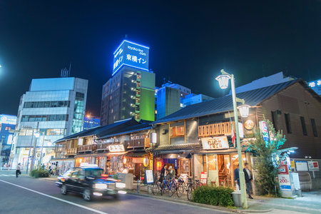 NAGOYA, JAPAN - May 30, 2017: street in Nagoya city at night on May 30, 2017, Japan.