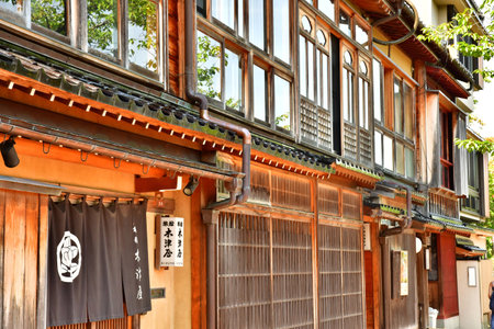 Kanazawa; Japan - August 22 2024: the Kazue Machi Chaya district near the Asano river