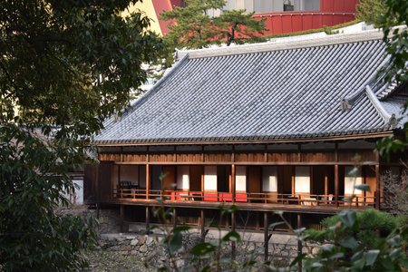 Kyoto, Japan - September 28, 2018 : Seiryoji Temple, historic architecture at Arashiyama