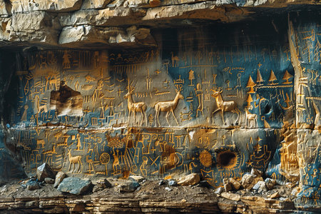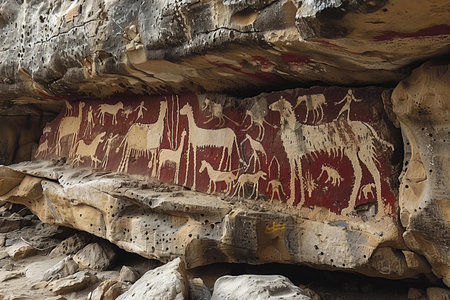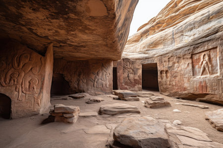 weathered petroglyphs on eroded rock formation, created with generative ai