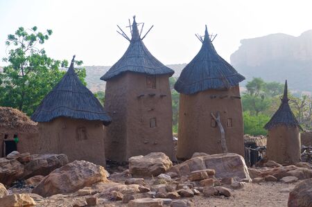 Granaries in a Dogon village, Mali (Africa).The Dogon are best known for their mythology, their mask dances, wooden sculpture and their architecture.