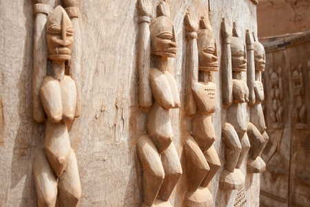 Wood sculptures near the Bandiagara Escarpment, Mali (Africa).
