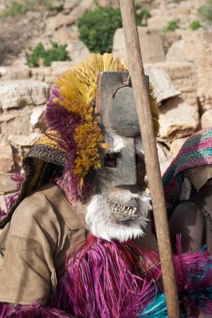 TIRELI, MALI - DECEMBER 30, 2009 Dogon tribes men dancing with their traditional mask on the main square of the village Tireli on December 30, 2009, Tireli, Mali