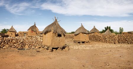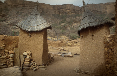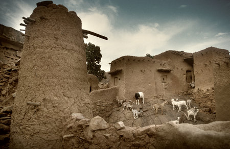 Tireli, Mali, Africa - January 30, 1992: Dogon village and typical mud buildings