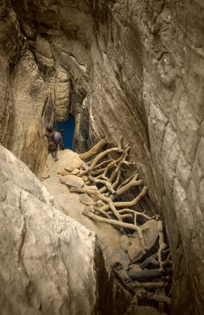 Aksum, Ethiopia - Feb 08, 2020: Ethiopian people on the road from Axum to the Simien mountains, North Ethiopia, Africa.