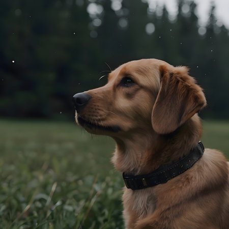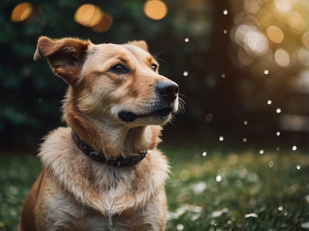 Adorable dog gazing into the distance, capturing the softness and beauty of the moment with a bokeh background. Perfect for pet lovers. Generated AI.