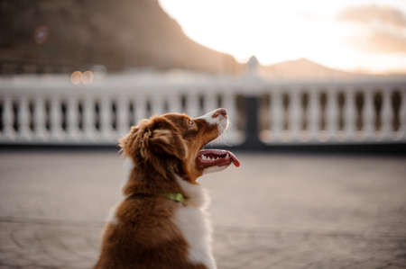 Dog Nova Scotia Duck Tolling Retriever in a field at sunrise