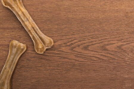 top view of pet bones on wooden table