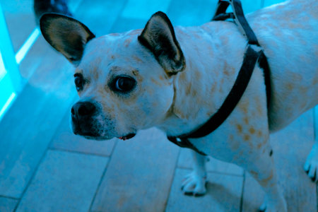 group of dogs sitting in living room, looking at their owners with curious and friendly expressions, created with generative ai