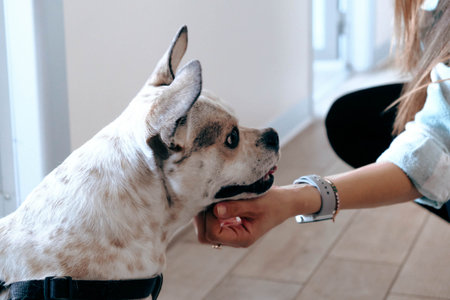POV of Dog Training: Teaching a Dog to Shake Hands with Focused Expression