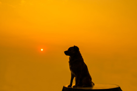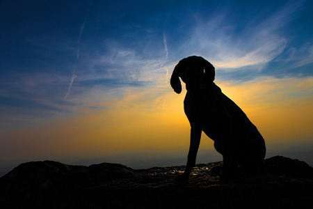 Silhouette of dog with beautiful sunset background.