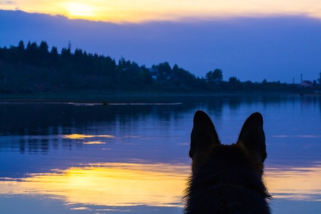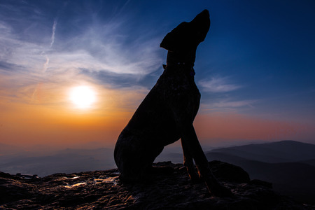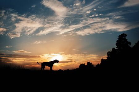 Dog portrait at sunset. Dog silhouette photo