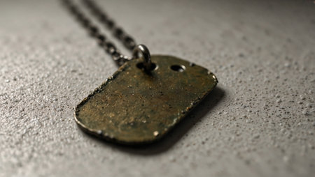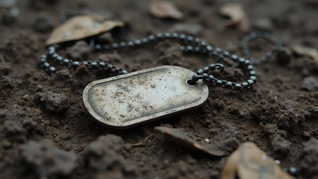 Vintage-style dog tags on textured background, honoring soldiers and remembrance