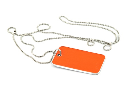 blank orange dog tag on white background