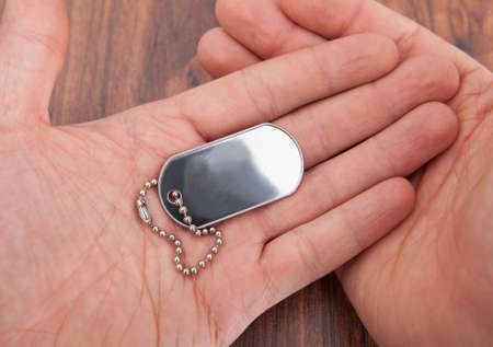 Close up of a military dog tag