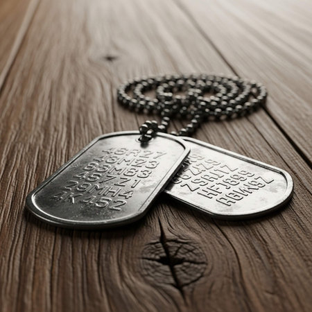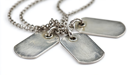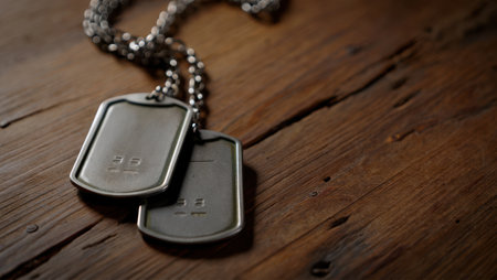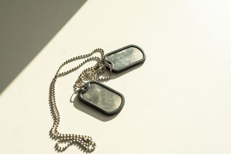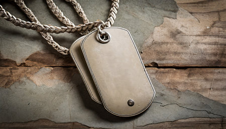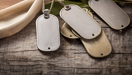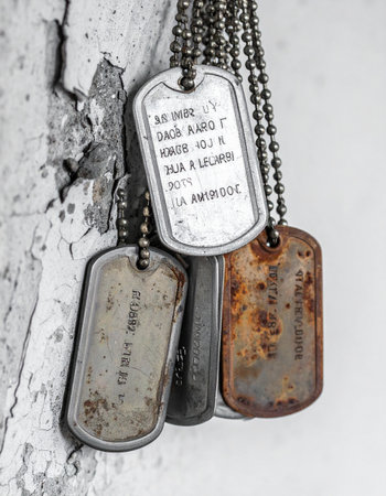 Vintage-style dog tags on textured background, honoring soldiers and remembrance