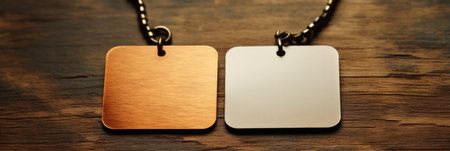 Blank military ID tags on brown textured background