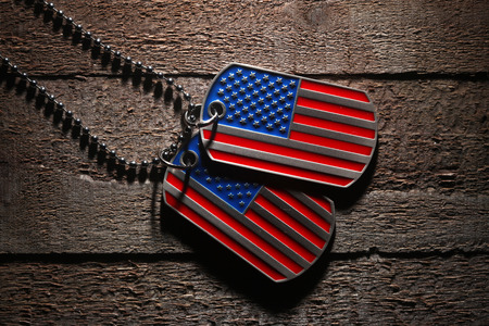 American flag and soldiers tags on background. Veterans Day Concept.