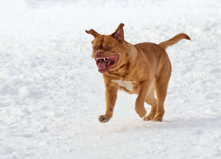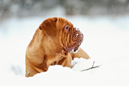 Portrait of Bordeauxdog, is a large French Mastiff breed at winter time