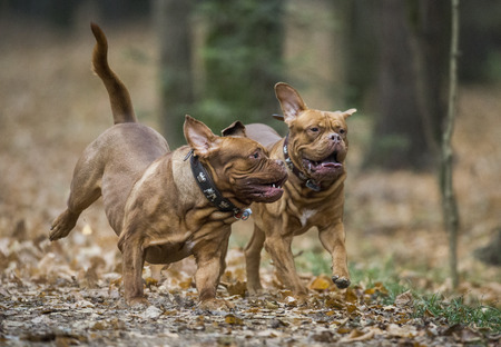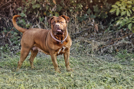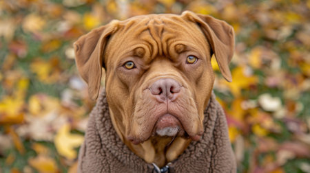 Bordeaux Mastiff in autumn park. An excellent illustration.