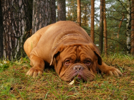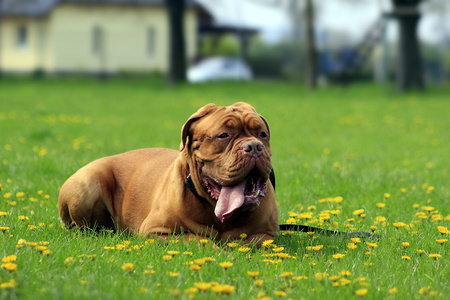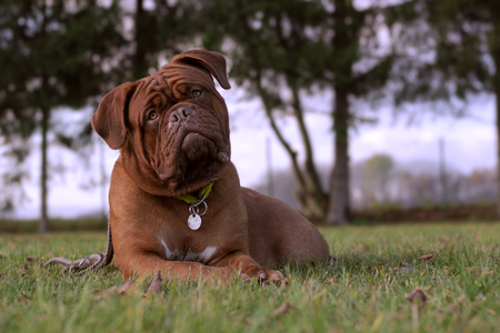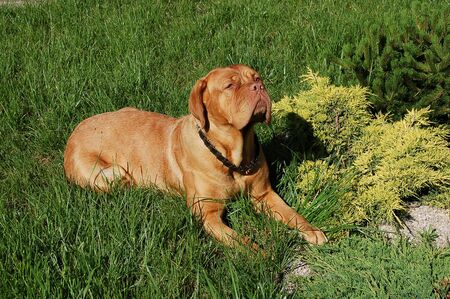 French Mastiff. Bordeaux dog. Big dog lying on the grass