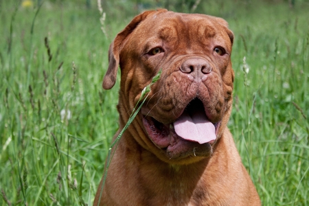 DOGUE DE BORDEAUX dog portrait while looking at you