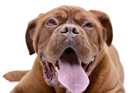 Portrait of an adorable Dogue de Bordeaux - isolated on white background.