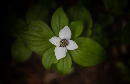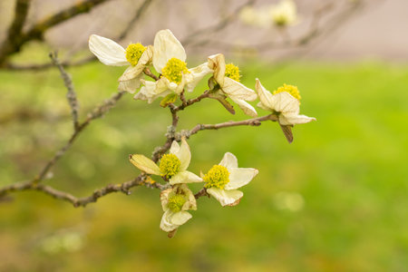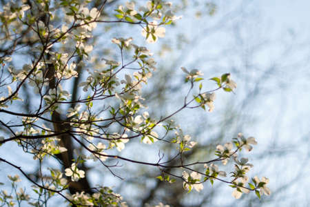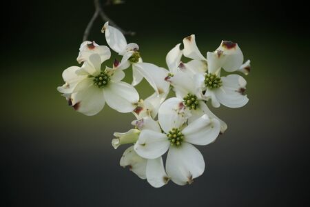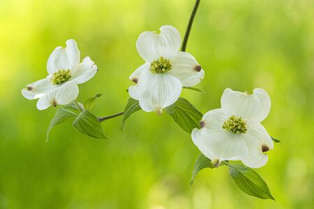 Branch of Flowering Dogwood white and green flower with a bokeh background in the Spring
