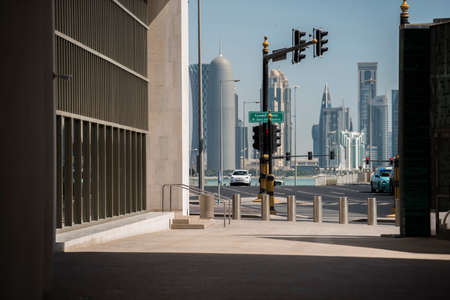 Doha, Qatar - December 20, 2018: city street, modern architecture