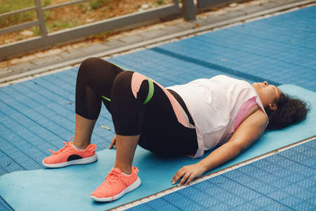 Curvy Afro woman doing workout exercises session - Young African female having fun training outdoor - Sporty people lifestyle concept
