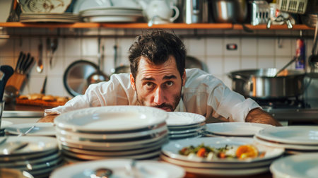 the chef was hiding behind dirty dishes