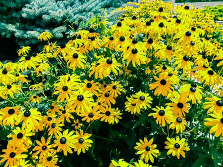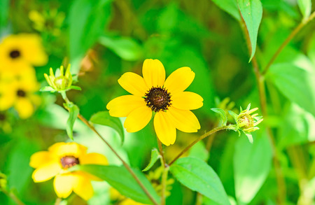 Black eyed susan- rudbeckia flowers, yellow flowers blooms in the garden