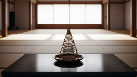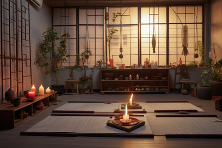 tai chi practice space with incense and candles, created with generative ai