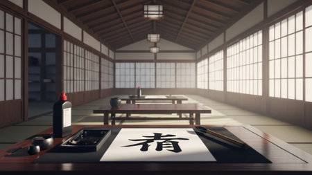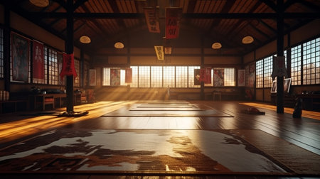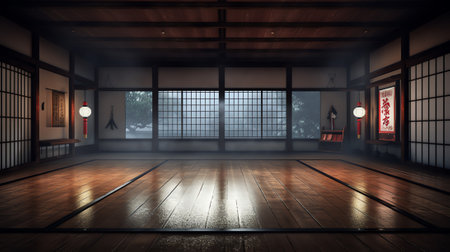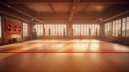 Interior Rendering of a Karate Dojo with Japanese Modern Style - Shallow Depth of Field - 3D Illustr
