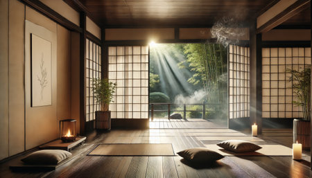 tranquil japanese meditation room with mats