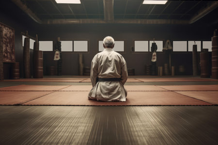 Karateka old man gym. Martial workout. Generate AI