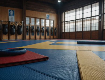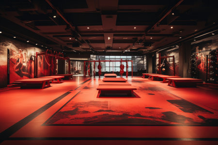 Photo of a modern karate or taekwondo dojo professional photography