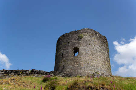 Dolbadarn Castle in Llanberis, Gwynedd, North Wales. Medieval castle on a hill with a blue sky