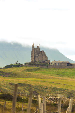 Aerial view of Ogwen Castle, a medieval castle in the county Donegal, Ireland.