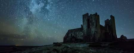 Medieval castle under starry night, history whispers