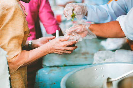 Homeless Concepts and Poverty : The hands of the poor receive food from the hands of the philanthropist : concept of giving