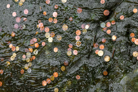 Coins in fountain water thrown by tourists