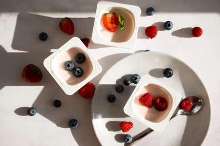 Yogurt with strawberries, raspberries, blueberries